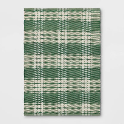 Elevate the decor of any room with this Plaid Chindi Hand-Woven Area Rug from Room Essentials™. This rectangular chindi area rug showcases a timeless plaid pattern to add a classic touch to any space. Designed for easy upkeep with its flat pile height, it’s perfect for high-traffic areas, and the hand-woven construction provides a unique touch of texture.