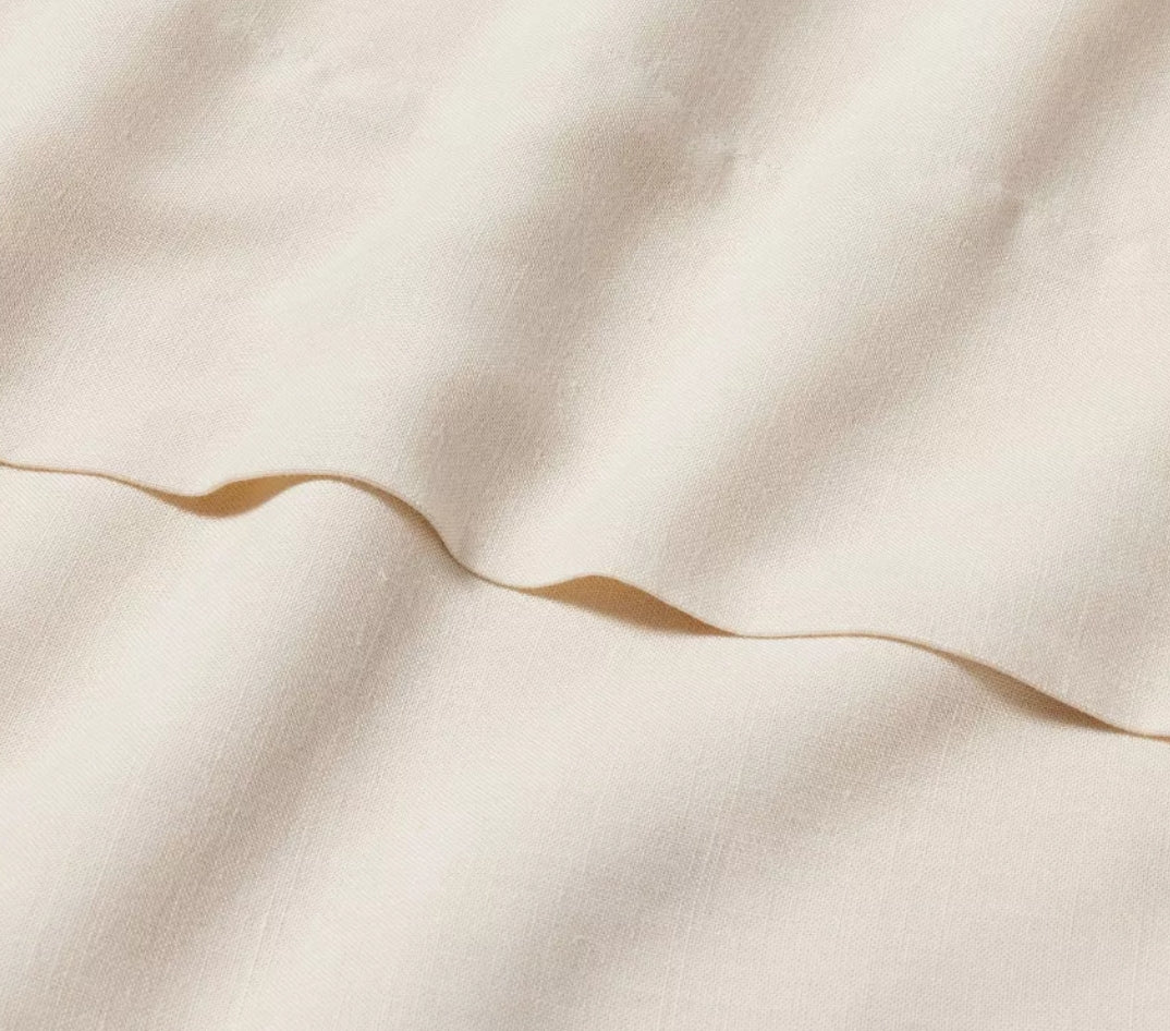 Give your bedding a cool and comfy feel by adding the Linen Blend Flat Sheet from Casaluna™ to your bedding ensemble. Soft linen-blend fabric makes for a comfortable night's sleep from season to season. The plain weave and solid color may be simple in design, but they allow for versatility when mixing and matching with pillows, comforters and fitted sheets of your choosing.